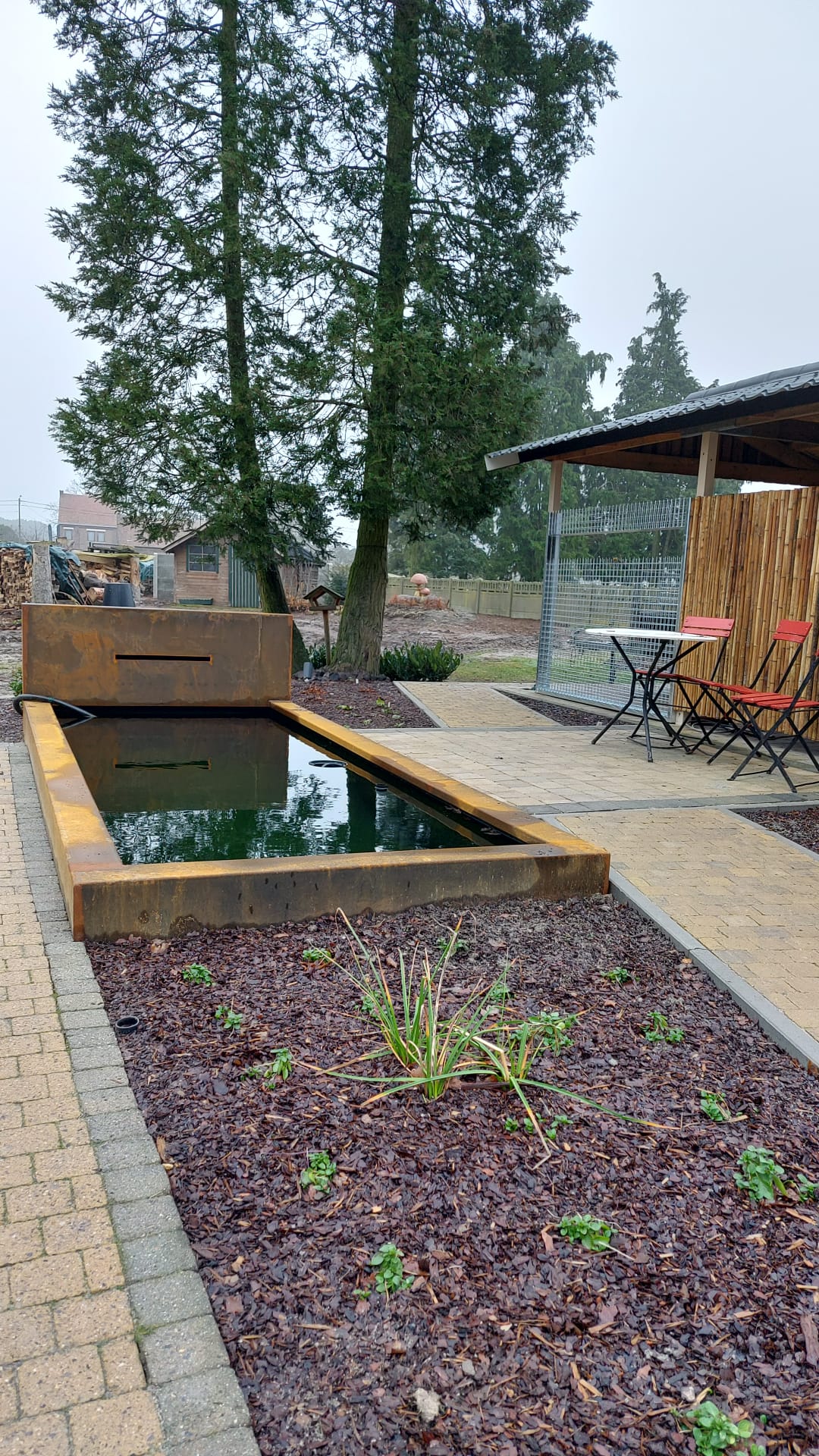 Vijver met afwerking in cortenstaal